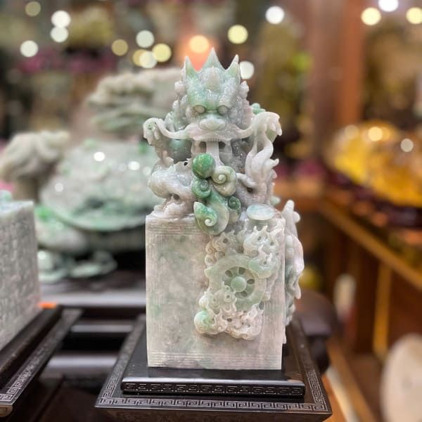 - Phong thủy: Ấn Rồng Ngọc Phỉ Thúy là biểu tượng của sự thịnh vượng, quyền lực và may mắn. Theo phong thủy, rồng là linh vật mạnh mẽ, giúp gia chủ thu hút tài lộc, bảo vệ gia đình khỏi vận xui và thúc đẩy sự nghiệp thăng tiến.