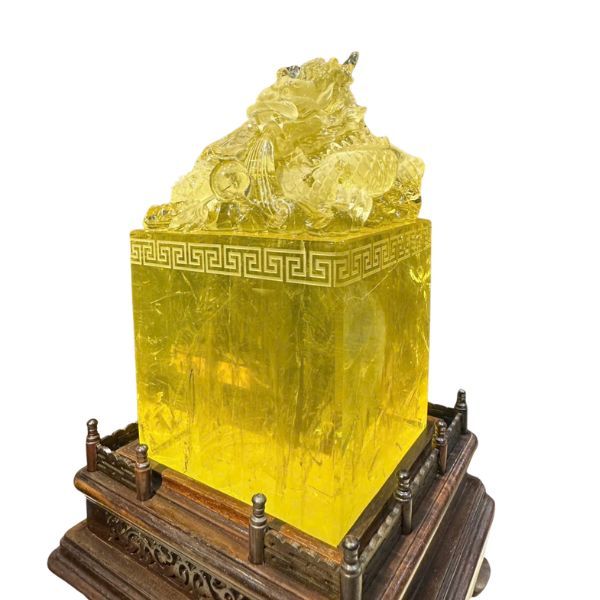 Ấn rồng thạch anh vàng 20cm là lựa chọn phong thủy cao cấp, thích hợp làm quà biếu sếp, đối tác, hoặc tự đặt tại văn phòng nhằm mở rộng quyền uy và tăng trưởng tài lộc.