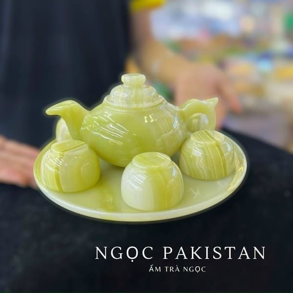 Bộ ấm chén ngọc Onyx xanh (Pakistan)