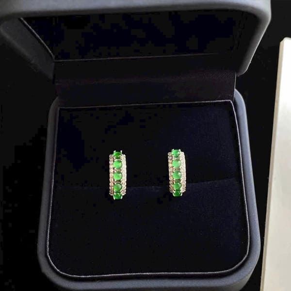 Bông Tai Ngọc Jadeite A Màu Lục Đế Khung Bạc