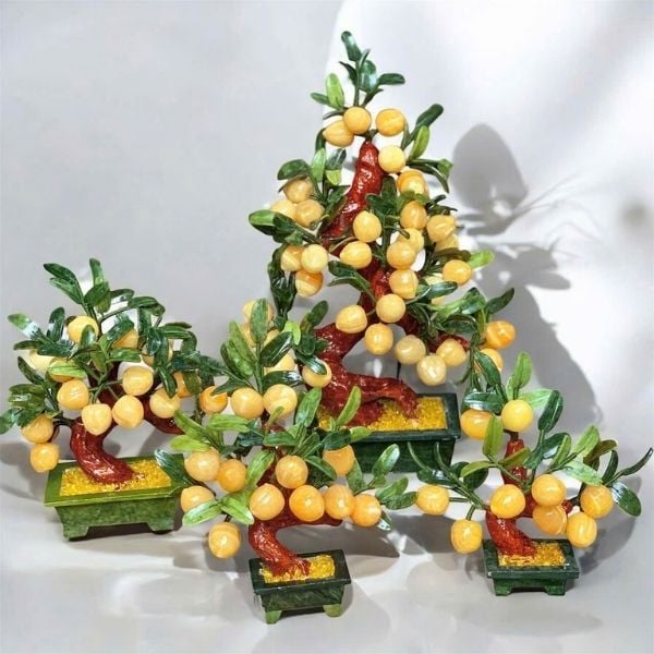 Cây đào phong thủy ngọc hoàng long trái nhỏ là dòng sản phẩm tinh xảo, nhỏ gọn – thích hợp đặt ở bàn làm việc, kệ nhỏ, bàn thờ Thần Tài hoặc làm quà tặng mang đậm ý nghĩa phong thủy. Với sắc vàng ấm từ ngọc hoàng long tự nhiên, cây không chỉ đẹp mắt mà còn mang đến nhiều cát khí cho gia chủ.