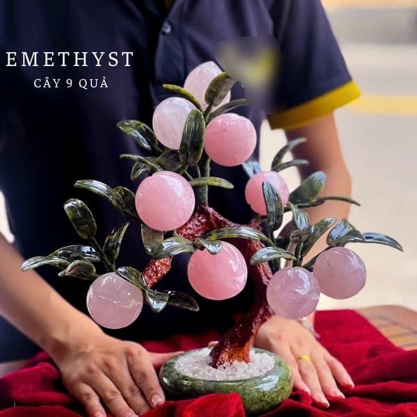 Cây Đào Thạch Anh Hồng 9 Quả - Biểu Tượng May Mắn, Tài Lộc Trong Phong Thủy
