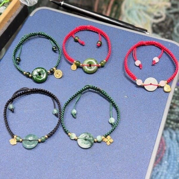 Dây Tết Kiểu Ngũ Điếu Đá Ngọc Mix Charm Bạc Mạ Vàng – Hài Hòa Ngũ Hành, Hộ Mệnh Toàn Diện, Tăng Vượng Khí