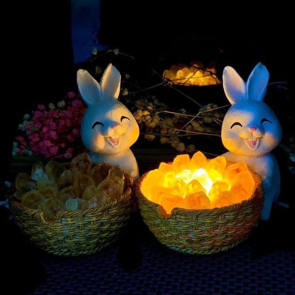 Đèn ngủ tinh thể Thạch anh vàng dáng Thỏ