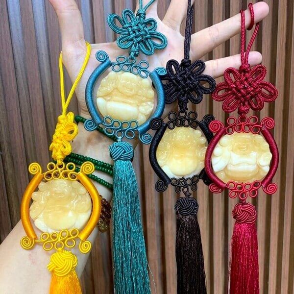 - Treo Khánh Treo Xe Di Lặc Ngọc Hoàng Long lên gương chiếu hậu hoặc vị trí thích hợp trong xe.