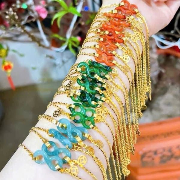 - Charm vô cực: Các charm vô cực được làm từ các loại đá quý tự nhiên bao gồm cẩm thạch, lam ngọc, mã não, bạch ngọc, và aquamarine. Mỗi loại đá này không chỉ tăng thêm phần sang trọng cho lắc tay mà còn mang những ý nghĩa phong thủy đặc biệt.
