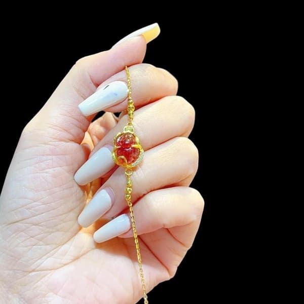 Lắc Vàng Tỳ Hưu Thiên Lộc Bọc Vàng 10K thạch anh tóc đỏ