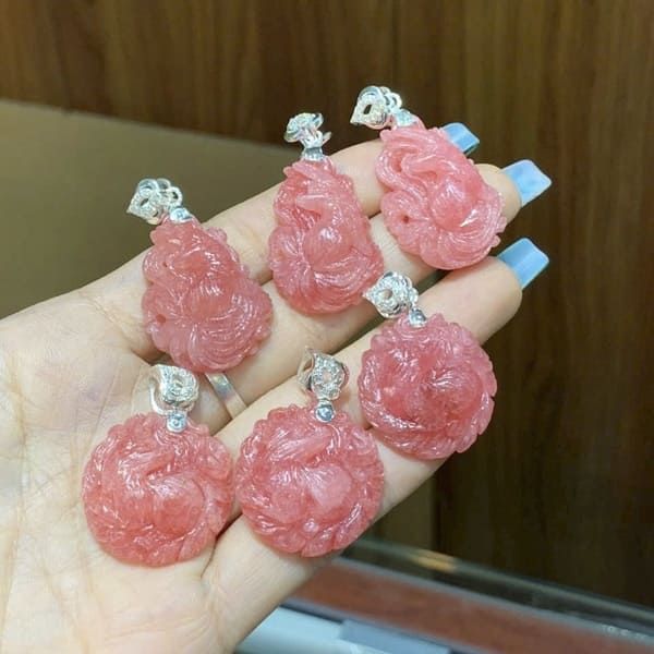- Đá đào hoa (Rhodochrosite): Mang đến năng lượng tích cực, giúp cải thiện mối quan hệ, tăng cường sự tự tin.