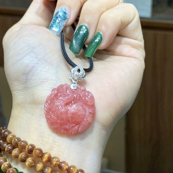 - Chất liệu: Đá đào hoa tự nhiên (Rhodochrosite) cao cấp, móc bạc 925