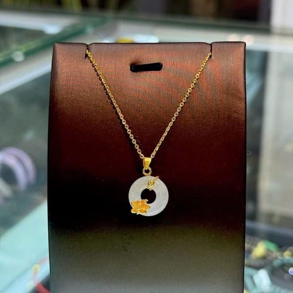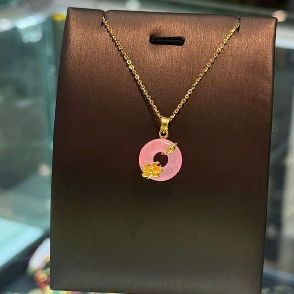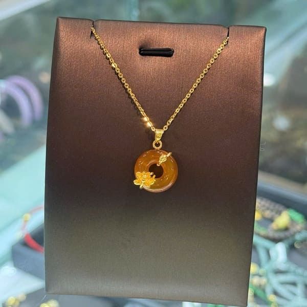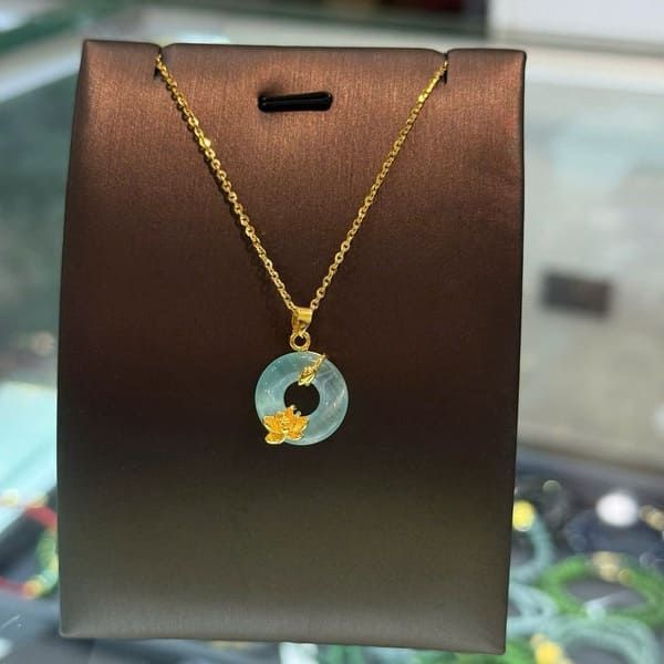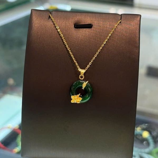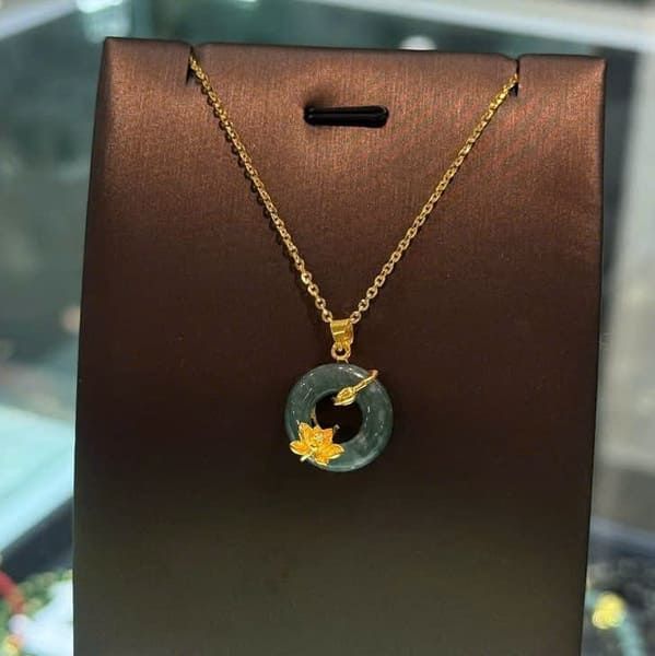 Mặt đeo cổ đồng điếu bọc hoa sen vàng 10K là mẫu trang sức phong thủy được chế tác tỉ mỉ từ đồng điếu đá tự nhiên (tùy chọn: ngọc bích, lam ngọc, ngọc hoa bay, sơn thủy...) kết hợp charm hoa sen vàng 10K sắc sảo và thanh cao. Mỗi chiếc mặt dây được hoàn thiện bằng tay, tôn lên nét tinh xảo và mang giá trị phong thủy đặc biệt: