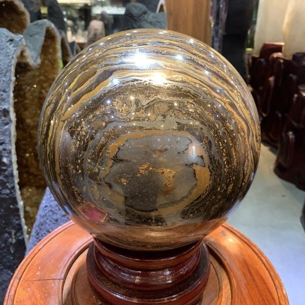 - Đặt trong phòng khách: Đặt quả cầu đá mắt hổ ở trung tâm phòng khách hoặc trên bàn làm việc để thu hút năng lượng tích cực và tài lộc.
