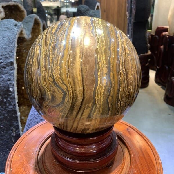 Quả cầu đá mắt hổ là sản phẩm độc đáo, không chỉ nổi bật với vẻ đẹp từ thiên nhiên mà còn mang lại nhiều ý nghĩa phong thủy tích cực, giúp gia chủ thu hút tài lộc và bình an.