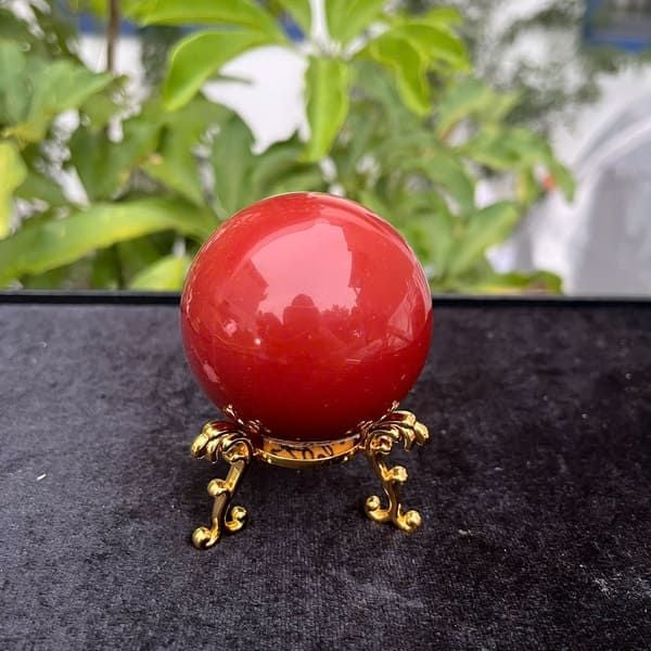 Quả Cầu Ngọc Bích Đỏ là một trong những vật phẩm phong thủy cao cấp, được chế tác từ ngọc bích tự nhiên với màu đỏ rực rỡ, biểu trưng cho năng lượng mạnh mẽ và sự thịnh vượng. Với đường kính 5,4cm và khối lượng 220g, quả cầu không chỉ là vật trang trí đẹp mắt mà còn mang đến những lợi ích phong thủy to lớn, đặc biệt phù hợp với những người mang mệnh Hỏa và mệnh Thổ.