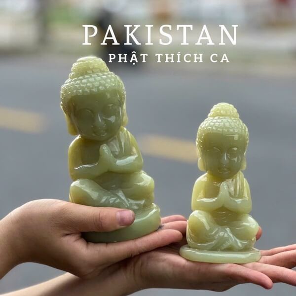 - Chất liệu ngọc Pakistan được mệnh danh là "ngọc của sự thanh cao và tinh khiết". Tượng Phật Thích Ca bằng ngọc Pakistan tượng trưng cho sự thanh tịnh, cao quý và trí tuệ viên mãn.