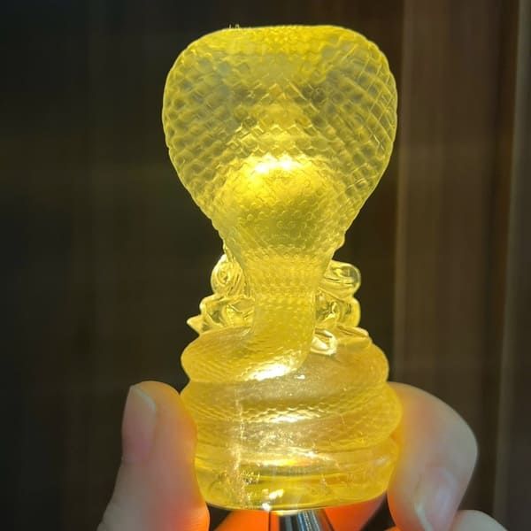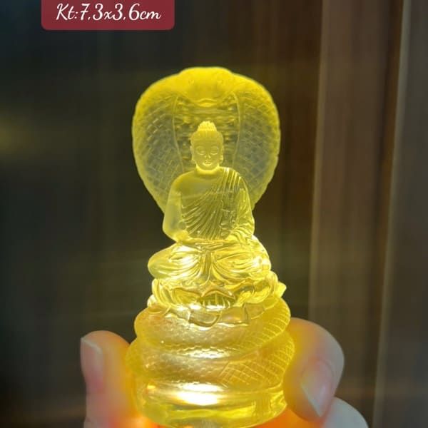 Thạch anh vàng là loại đá quý trong phong thủy, được cho là mang lại sự thịnh vượng, may mắn và năng lượng tích cực. Tượng Phật Thích Ca với hình ảnh con rắn Naga biểu thị cho sự bảo vệ và bình an, giúp gia chủ tránh xa những điều không may và thu hút vận may, tài lộc.