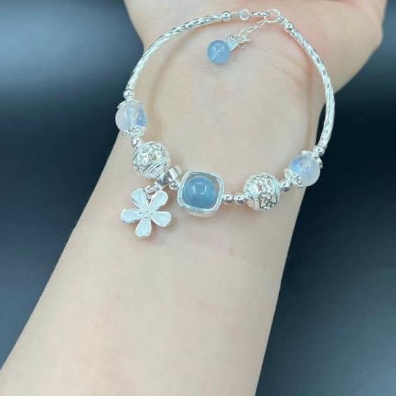 Vòng Tay Đá Aquamarine Mix Đá Mặt Trăng và Charm Bạc: Mang Lại May Mắn Và Vẻ Đẹp Tinh Tế