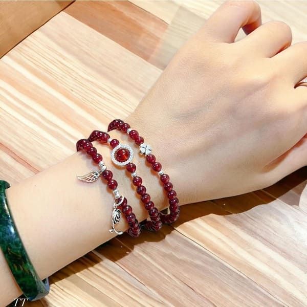 - Vòng Tay Garnet Mix Charm Bạc 6mm có thể được đeo như một món phụ kiện hàng ngày hoặc trong các dịp đặc biệt.
