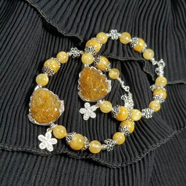 - Vòng Tay Hồ Ly Chúa Và Hoa Mẫu Đơn Thạch Anh Tóc Vàng có thể được đeo như một món trang sức thời trang hoặc như một bùa hộ mệnh mang lại may mắn.