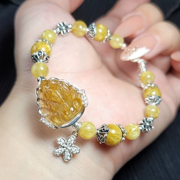 Vòng Tay Hồ Ly Chúa Và Hoa Mẫu Đơn Thạch Anh Tóc Vàng - Vẻ Đẹp Quyến Rũ, Mang Lại May Mắn Cho Tình Duyên