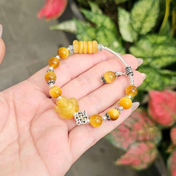 Bí quyết thu hút tài lộc và may mắn cùng Vòng Tay Hồ Ly Mắt Hổ Vàng Tâm Mix Ngũ Điếu & Charm Bạc!