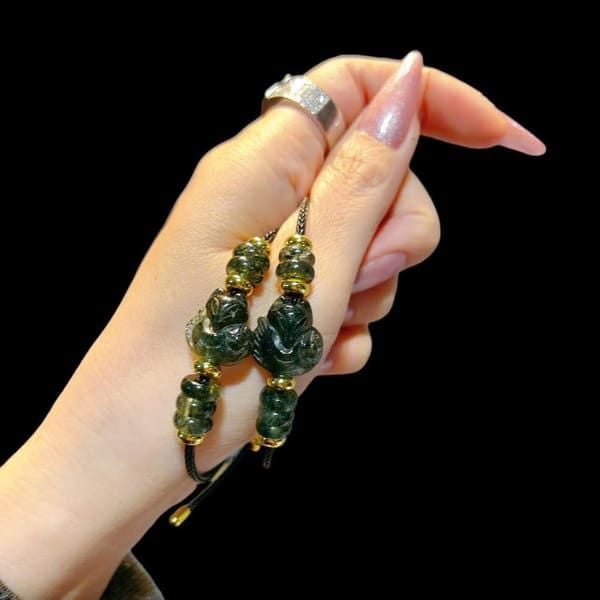 - Phong thủy: Vòng tay hồ ly mix ngũ điếu thạch anh tóc xanh không chỉ đẹp mắt mà còn mang lại những tác dụng phong thủy cực kỳ tốt. Hồ ly được cho là biểu tượng của sự may mắn, tài lộc, giúp gia chủ thu hút vận khí tốt, hóa giải năng lượng xấu. Thạch anh tóc xanh giúp tăng cường năng lượng tích cực, thúc đẩy sự nghiệp thăng tiến và mang lại sự bình an trong cuộc sống.