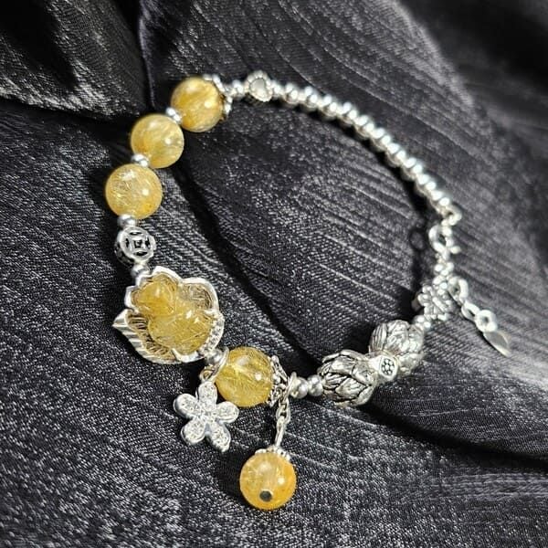 Vòng Tay Hồ Ly Thạch Anh Tóc Vàng Bọc Bạc Mix Charm Bạc: Mang Lại May Mắn, Tài Lộc Và Sức Khỏe