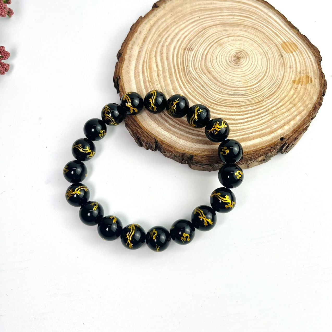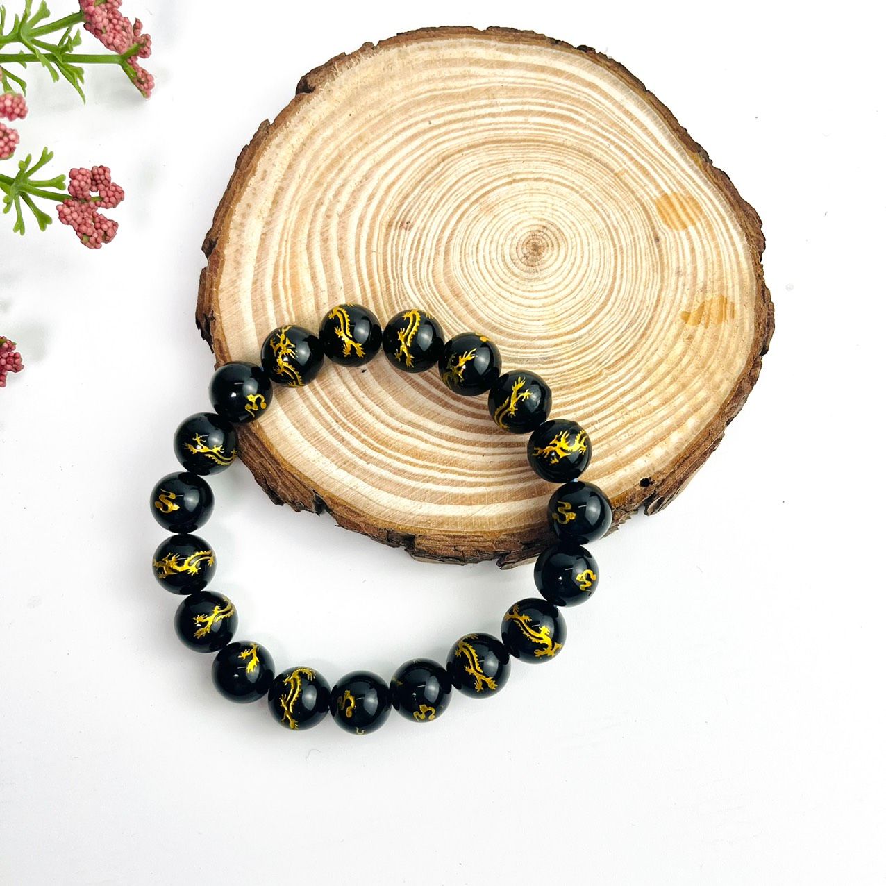 Vòng Tay Nam Mã Não Đen Chạm Rồng Vàng 10mm: Uy Quyền, May Mắn Cho Phái Mạnh
