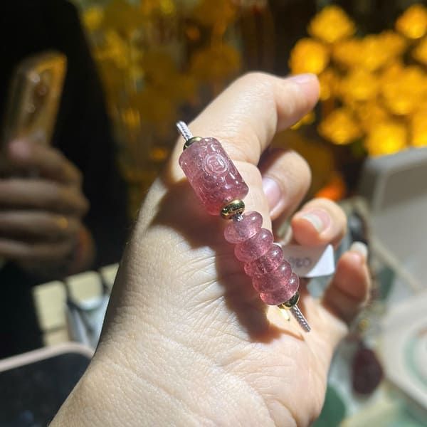 Chất liệu charm: Thạch anh dâu tây hồng tự nhiên