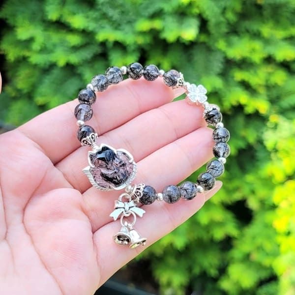 Vòng Tay Thạch Anh Tóc Đen Mix Hồ Ly Charm Bạc