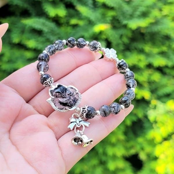 Vòng Tay Thạch Anh Tóc Đen Mix Hồ Ly Charm Bạc - Biểu Tượng May Mắn, Tài Lộc Và Tình Duyên