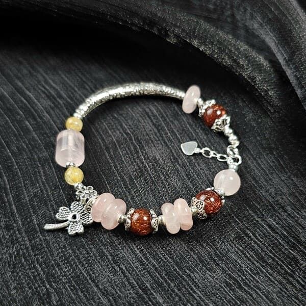 - Vòng tay thạch anh tóc đỏ mix thạch anh hồng, tóc vàng mang lại vẻ đẹp tự nhiên và gần gũi với thiên nhiên.