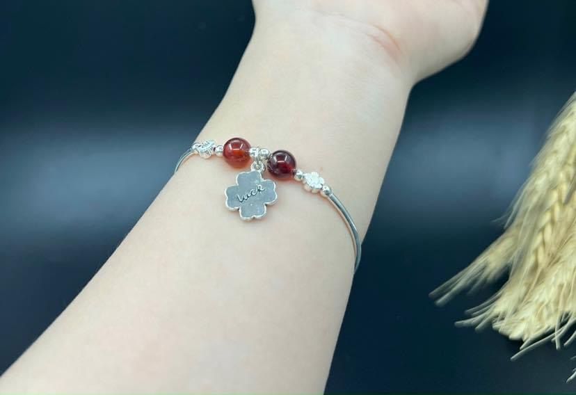 Vòng Tay Thạch Anh Tóc Đỏ và Đá Garnet Mix Charm Bạc